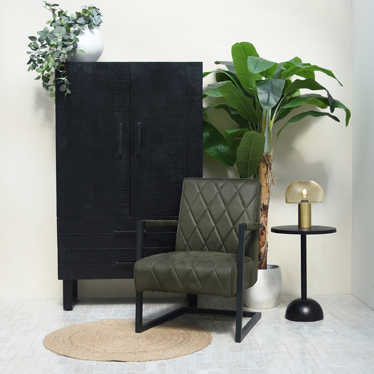 D-MAXX - Fauteuil Denmark 62x80x86 cm - Army Microvezel | Zwart Metaal