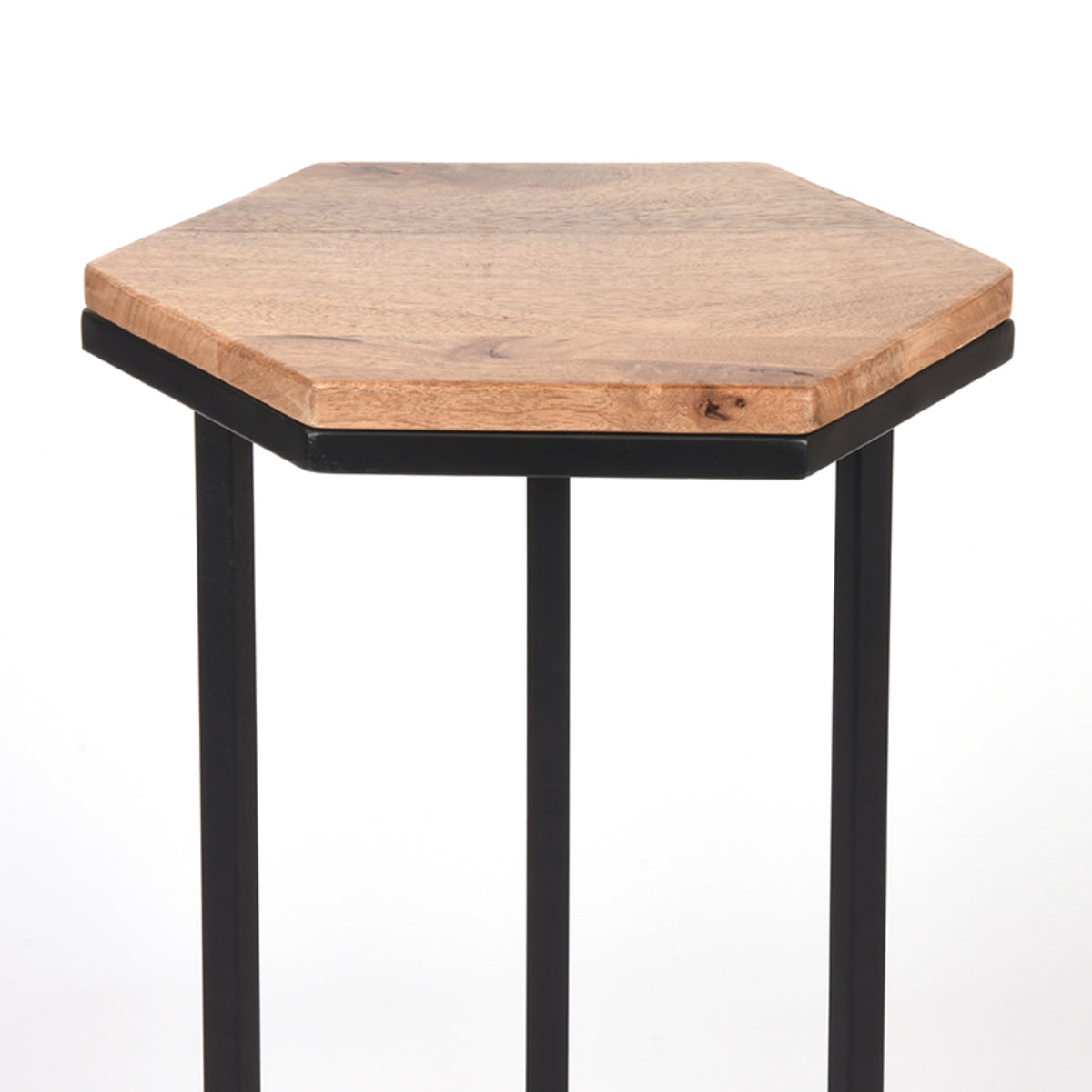 Laptoptafel Slide van LABEL51 is een stoere tafel met een speels zeshoekig design, uitgevoerd in mangohout en metaal. Zijn naam zegt het al, deze tafel is makkelijk aan een bank te schuiven om zo alles bij de hand te hebben, kortom, een echte musthave!