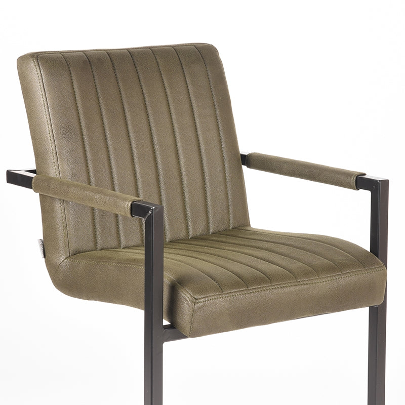 LABEL51 - Eetkamerstoel Milo 55x55x85 cm - Army Microvezel | Zwart Metaal